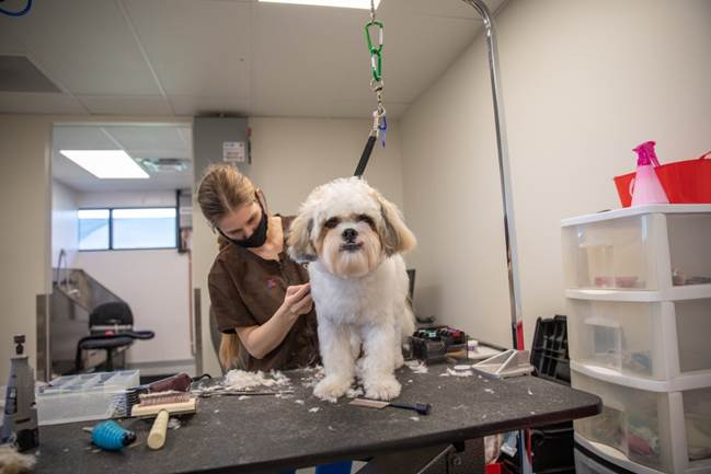 Your pet will stay with us for 4-6 hours depending on their size, coat type, and how well they tolerate grooming. During their stay, they’ll be provided water and bathroom breaks.